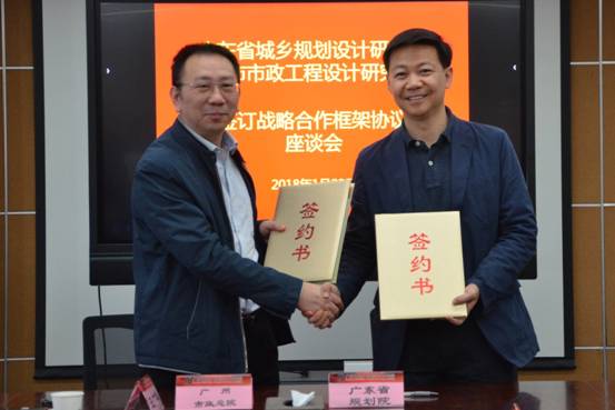 1月23日,廣州市市政工程設(shè)計研究總院與廣東省城鄉(xiāng)規(guī)劃設(shè)計研究院舉行戰(zhàn)略合作框架協(xié)議簽約儀式。熊正元院長、邱衍慶院長代表雙方簽訂了協(xié)議書。