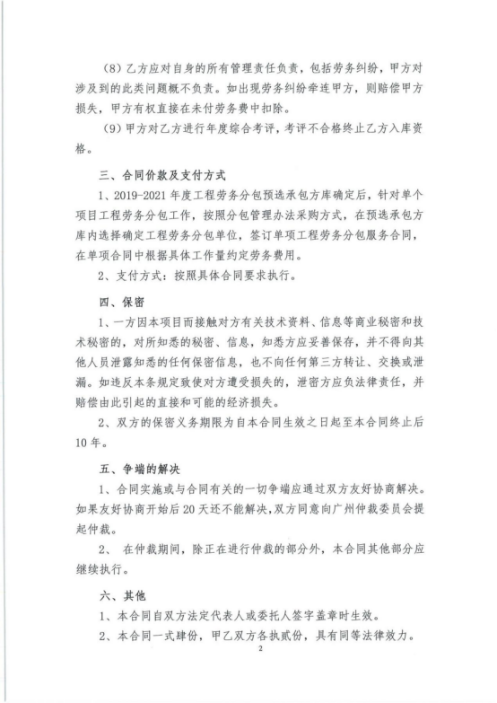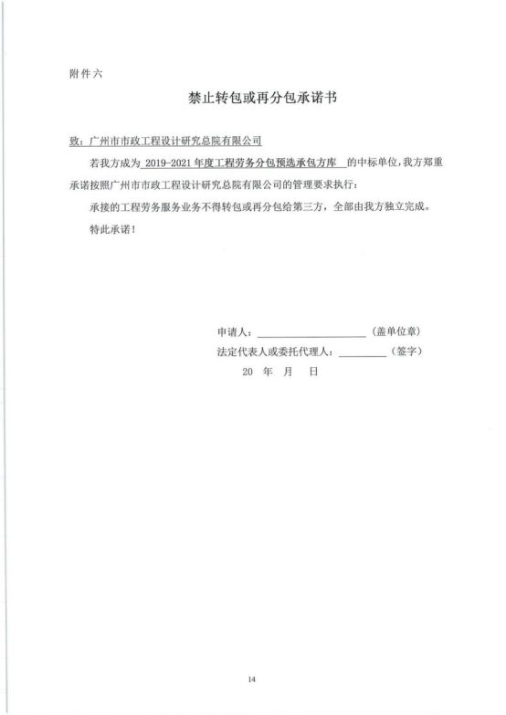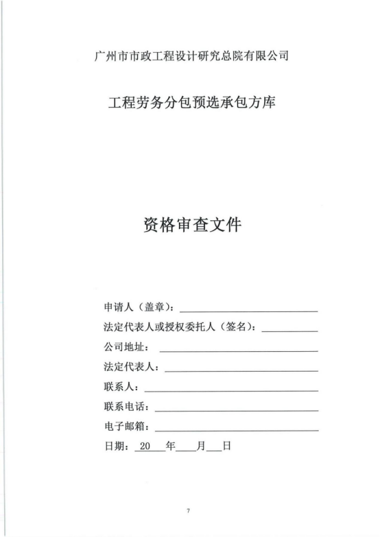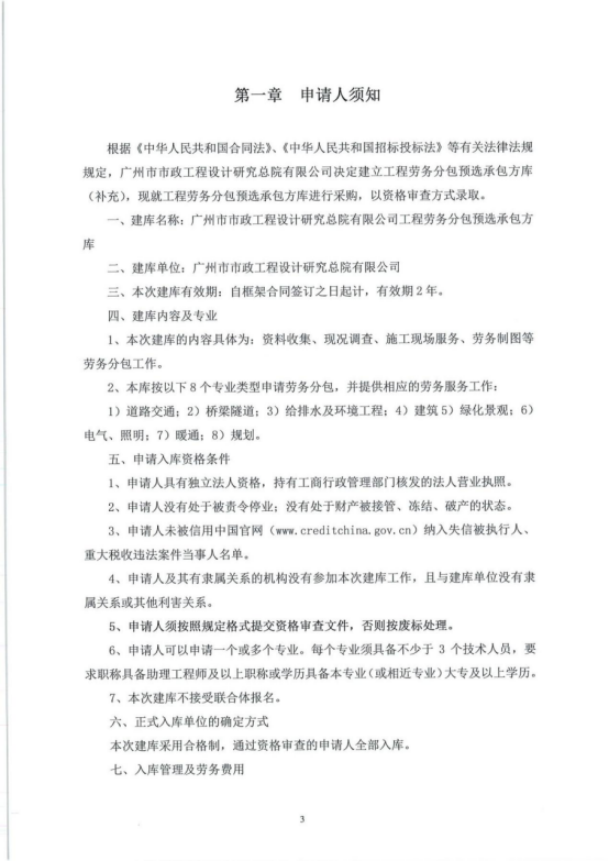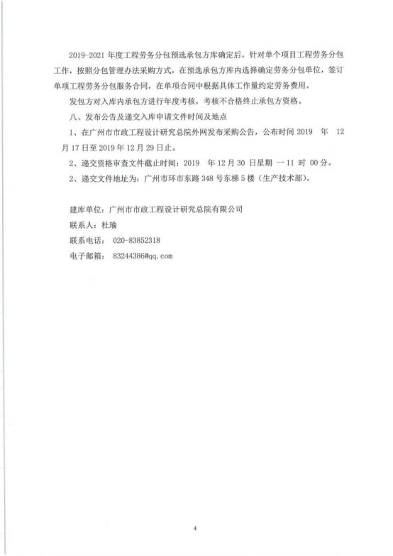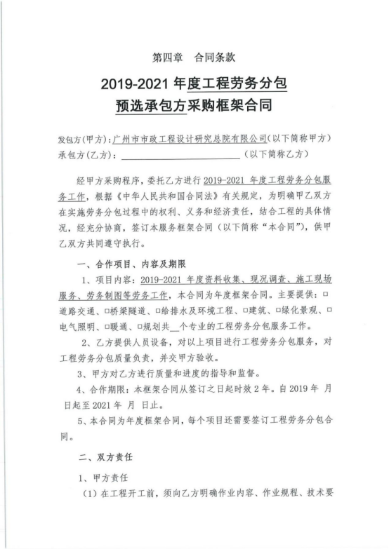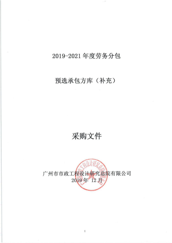 2019-2021年度勞務分包預選承包方庫采購文件(補充)