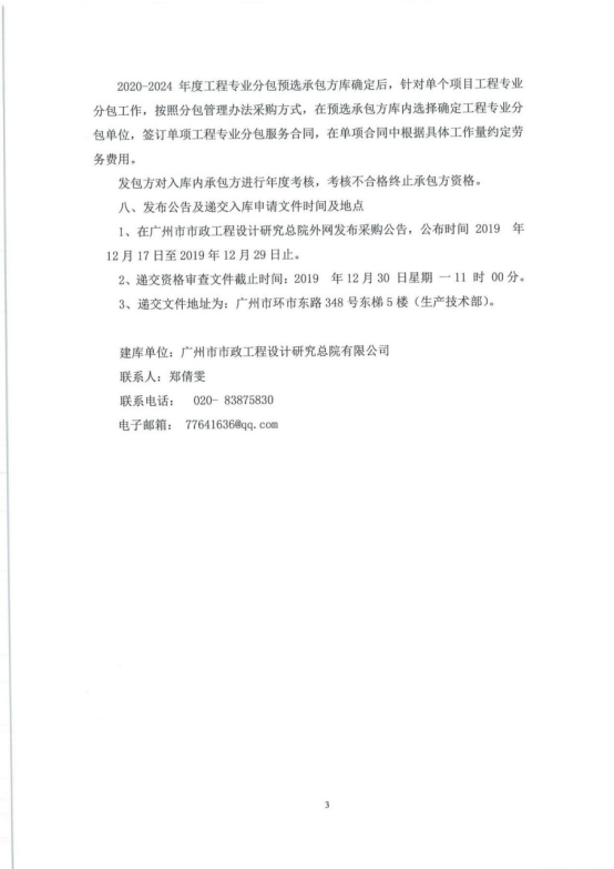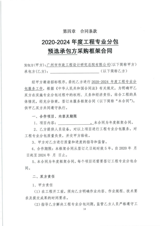 2020-2024年度工程專業(yè)分包預選承包方庫采購文件
