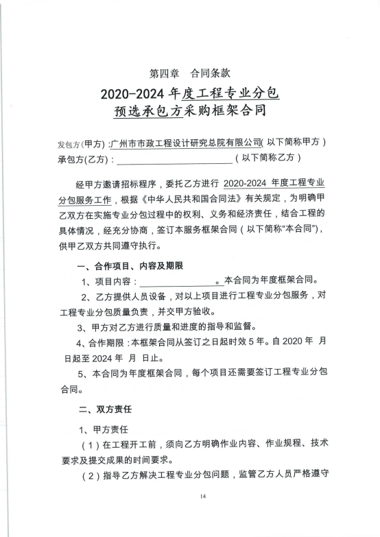 2020-2024年度工程專業(yè)分包采購文件(第一次補(bǔ)充)