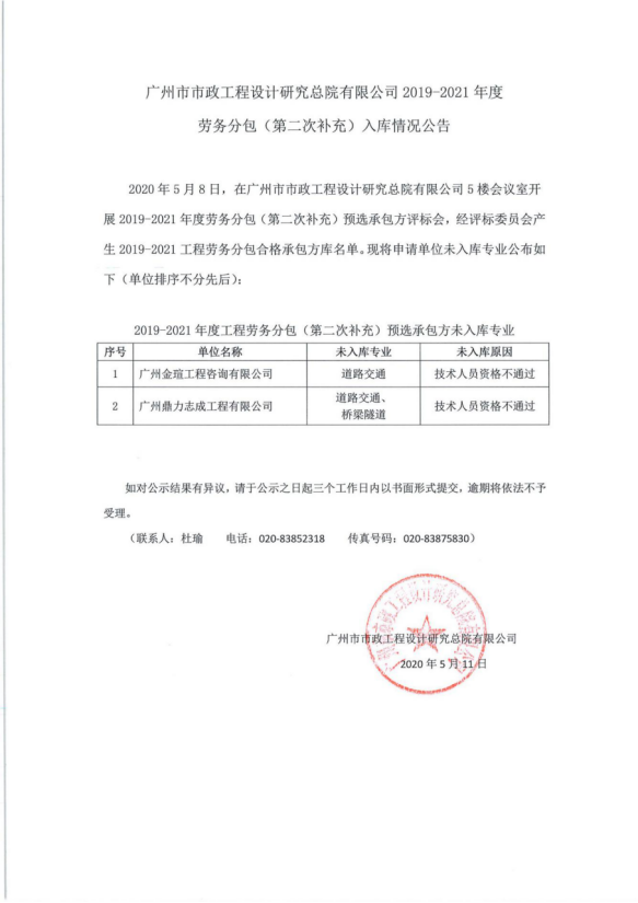 2019-2021年度勞務(wù)分包(第二次補(bǔ)錄)入庫(kù)情況公告