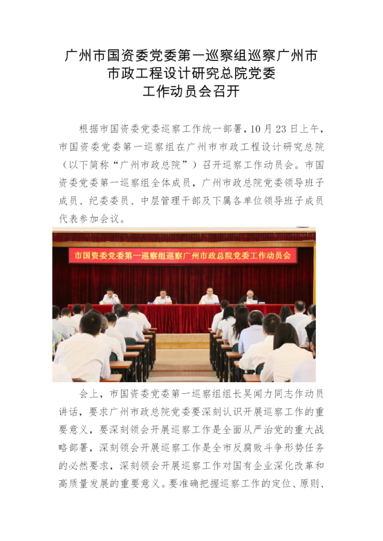 廣州市國資委黨委第一巡察組巡察廣州市市政工程設(shè)計(jì)研究總院黨委工作動員會召開
