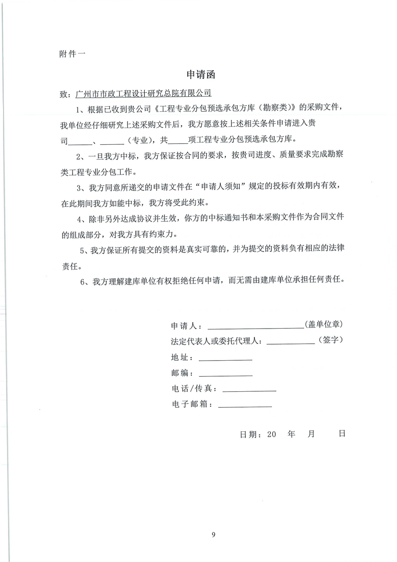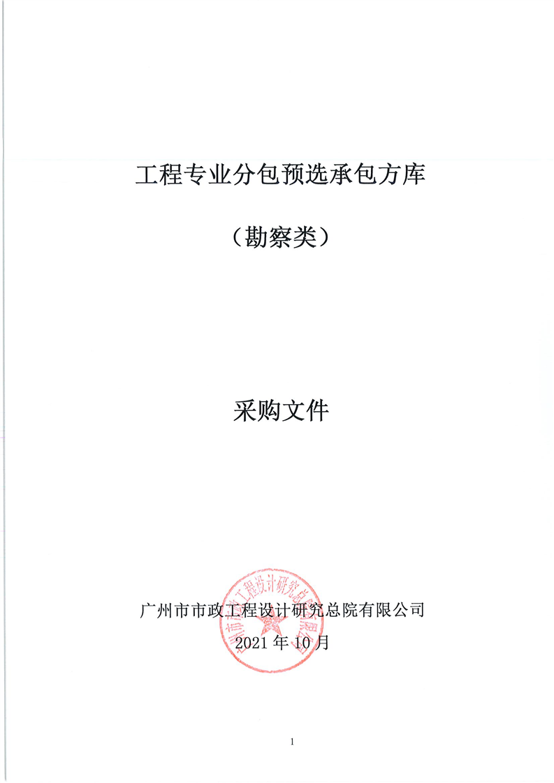 工程專業(yè)分包預(yù)選承包方庫(kù)采購(gòu)文件(勘察類)