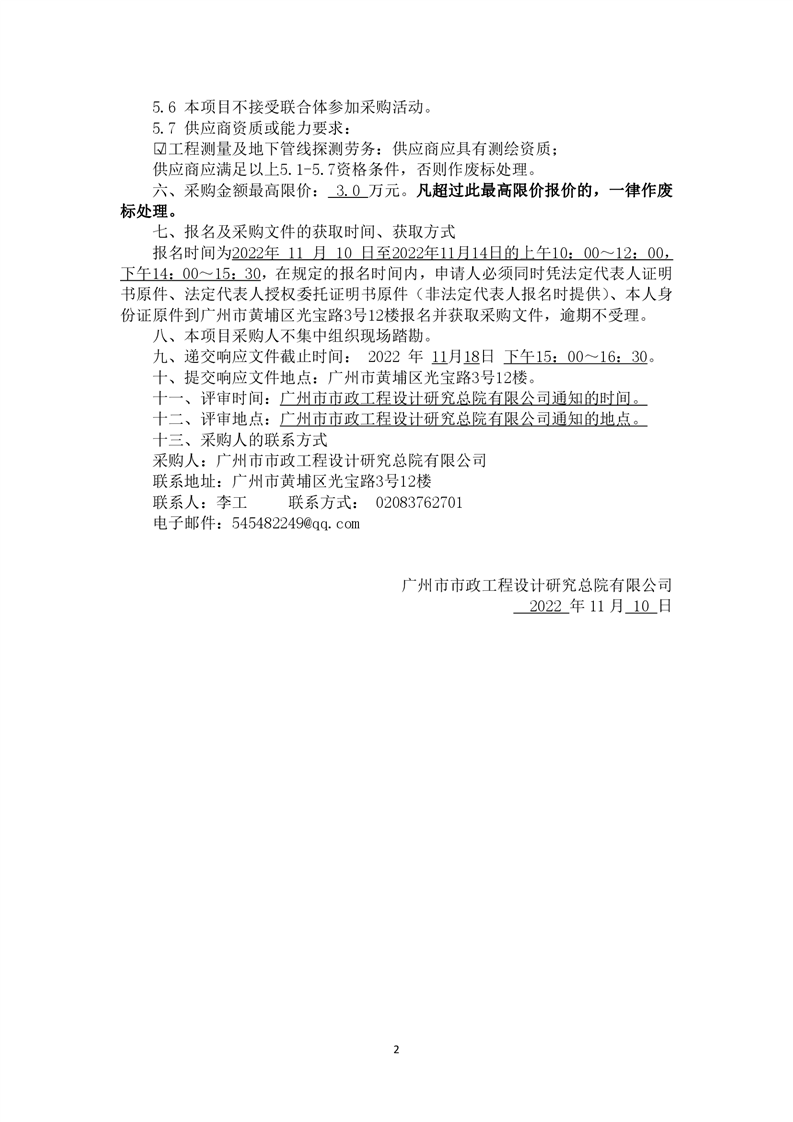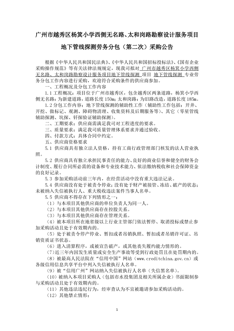 采購公告發(fā)布-廣州市越秀區(qū)楊箕小學西側無名路、太和崗路勘察設計服務項目地下管線探測勞務分包(第二次)