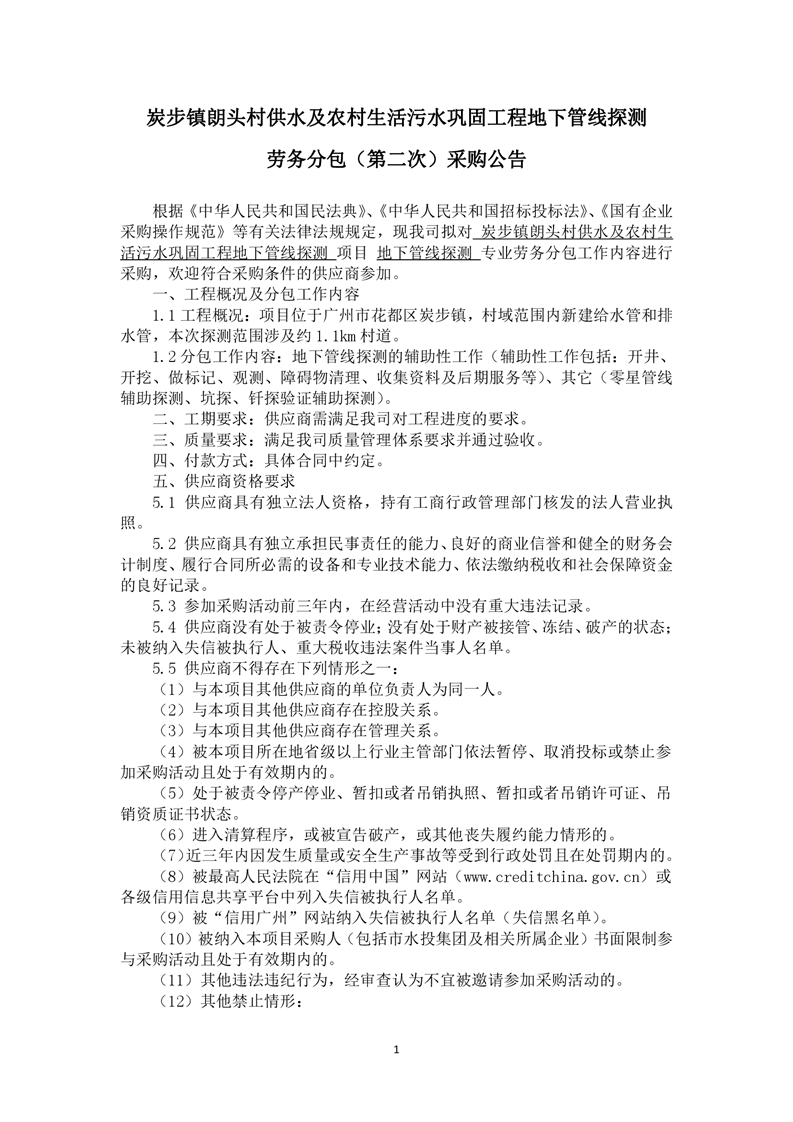 采購公告發(fā)布-炭步鎮(zhèn)朗頭村供水及農(nóng)村生活污水鞏固工程地下管線探測勞務(wù)分包(第二次)
