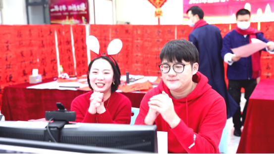 活動現(xiàn)場,研發(fā)中心博士后王蓓和設(shè)計四院工程師郭本棋化身“帶貨”主播,為本次活動設(shè)計了“企業(yè)文化知識競答題”“線上燈謎會”“線上祝福語”等趣味環(huán)節(jié),送出年味十足的獎品;設(shè)計三院工工會主席袁哲、生產(chǎn)技術(shù)部工程師葉聲遠(yuǎn)、鄧若瑜和實業(yè)公司代云華,化身“職工書法家”,為職工線上揮筆潑墨,書寫新春對聯(lián)。
