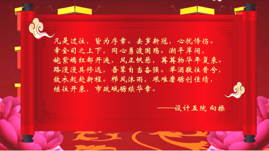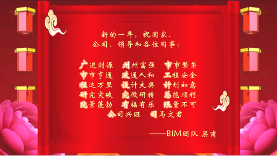本次活動共收集了576位職工的新春祝福,評選出了30條精選祝福語,其中來自BIM團(tuán)隊梁甫的藏頭詩、設(shè)計五院向操的賦詞別出心裁。一行行俊逸的新春對聯(lián),揮灑在一張張喜慶的紅紙上,書寫著一句句對祖國、總院的祝福。一句句國泰民安、政通人和、春意盎然的寄語,字里行間,表達(dá)著對黨和祖國的由衷贊嘆,對幸福生活的美好向往。